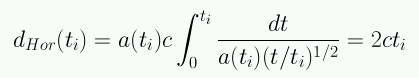Para el modelo de inflación en que ti=10-36 s y Hi=1036 s, la distancia al horizonte justo antes de la inflación es: