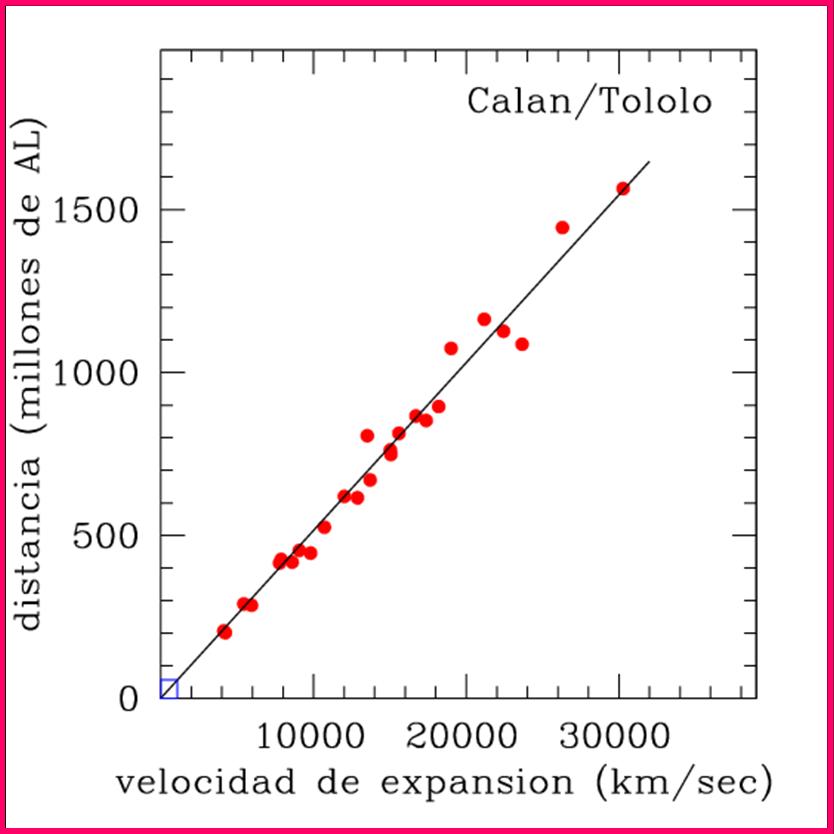 Para poder medir distancias a z=0.2 los objetos a observar deben ser muy luminosos. Si bien las galaxias son muy luminosas, estas presentan un gran rango de luminosidades. Además las luminosidades de las galaxias evolucionan en el tiempo. Los objetos que reunen la condición de 1) ser luminosos y 2) tener luminosidades calibrables son las supernovas de tipo Ia. Esto quedó establecido durante el proyecto Calán/Tololo en 1996: