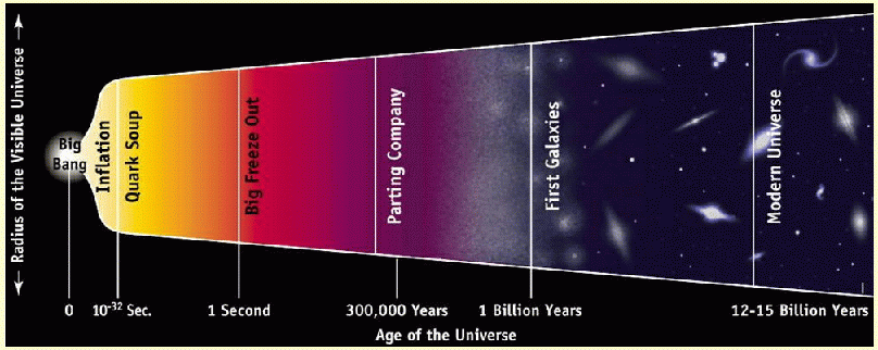 | Era de Planck/ TOE | <5×10-44 s | --- | --- | >1032 | >1028 |