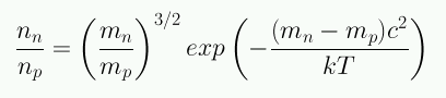 Siempre que los neutrones y protones se mantengan en equilibrio por estas reacciones sus densidades estarán dadas por la ecuación de Maxwell-Boltzmann: