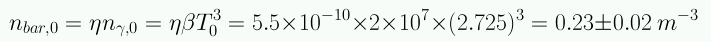 Este valor de η se puede convertir a la densidad actual de bariones: