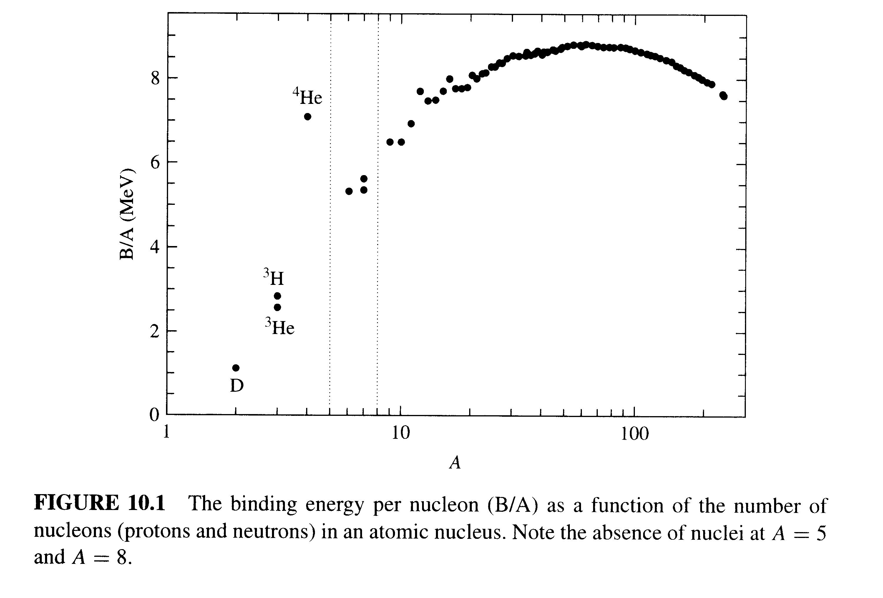 2) La gran estabilidad del 4He con respecto al 8Be impide mayor grado de nucleosíntesis y sólo se producen pequeñas cantidades de núcleos más pesados. La nucleosíntesis primordial queda muy incompleta.