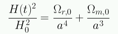 Durante la época en que la radiación y la materia dominaba, la constante de Hubble estaba dada por: