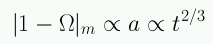 A medida que el factor de escala (a) crecía, Ω se alejaba más y más de 1. Durante la época de radiación: