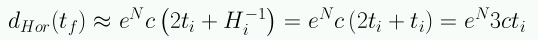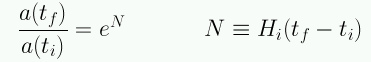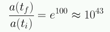 Si tf-ti fue suficientemete grande comparado con Hi el crecimiento del factor de escala pudo haber sido enorme. Por ejemplo, si la inflación comenzó en la época GUT a t=10-36 s, el parámetro de Hubble Hi=1036 s-1, y si N=100, obtenemos: