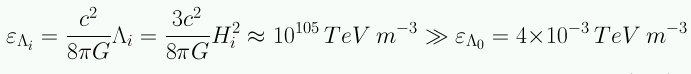 Para producir expansión exponencial con Hi=1036 s-1 se requiere una constante cosmológica con una densidad de energía:
