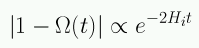 Durante la inflación causada por una constante cosmológica constante, H se mantiene constante y a(t) crece exponencialmente, por lo cual la diferencia entre Ω y 1 decrece exponencialmente:
