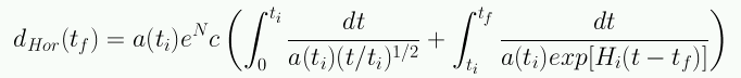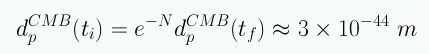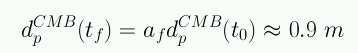 Si la inflación terminó en tf=10-34 s, lo cual corresponde a af~2×10-27, en el instante justo después de la inflación el CMB que se observa hoy día estuvo contenido es una esfera de radio propio: