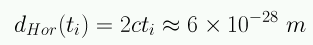 Para el modelo de inflación en que ti=10-36 s y Hi=1036 s, la distancia al horizonte justo antes de la inflación es: