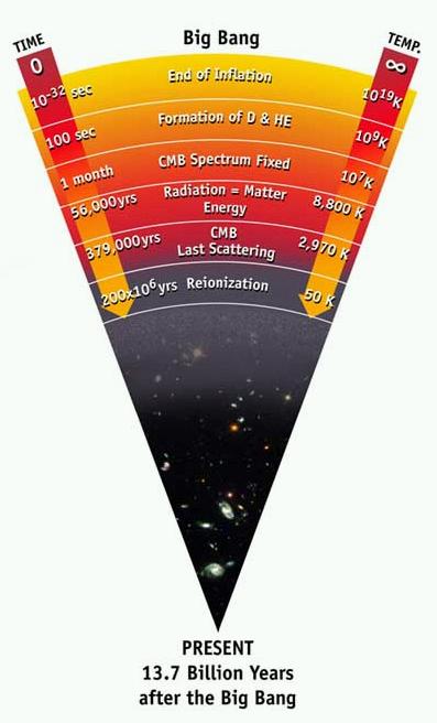 | Evento | Tiempo | Factor de escala (a) | Redshift | Temperatura (K) | Energía (eV) |