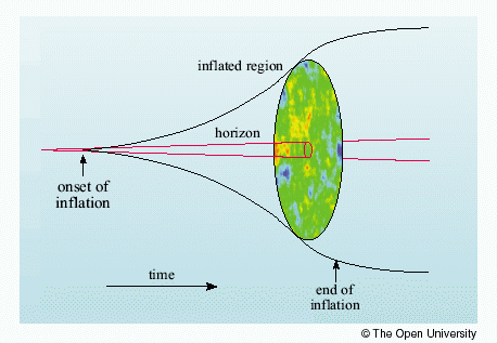 Dos regiones en la superficie del CMB separadas por más de 20 estaban fuera del horizonte de la otra y no pueden haber estado en comunicación física. Sin embargo, el CMB muestra variaciones de temperatura de apenas 10-5 a escalas mayores de 20.