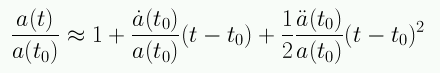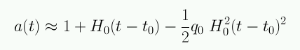 Es imposible medir como varía el factor de escala a(t) desde el Big Bang, pero sí podemos hacer mediciones que nos permiten determinar a(t) para épocas cercanas a t0. Para esto podemos efectuar una expansión de Taylor cerca de t0 para las cantidades de interés: