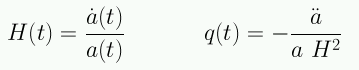 Notar que el parámetro q es adimensional y es negativo cuando el Universo se desacelera y es positivo cuando se acelera. En esta expansión de Taylor los parámetros H y q describen la cinemática. Podemos usar la ecuación de la aceleración: