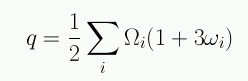 la ecuación de aceleración da una relación entre q y los parámetros de densidad de las distintas componentes del Universo: