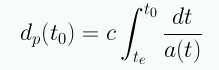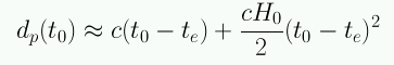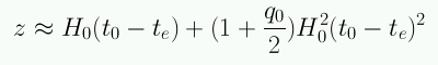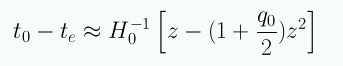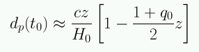 Usando la expansión para a(t) podemos obtener la siguiente aproximación para la distancia propia a partir del look-back time: